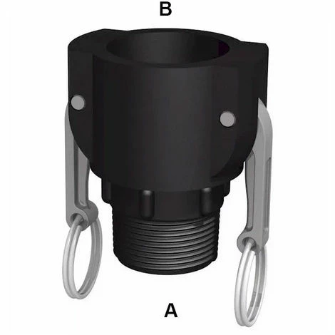 Raccord camlock femelle – fileté male BSP en polypropylène chargé fibre de verre . Ces raccords ont une excellente résistance chimqiue avec un poids très léger.