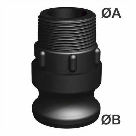 Raccord camlock male – fileté male BSP en polypropylène chargé fibre de verre . Ces raccords ont une excellente résistance chimqiue avec un poids très léger.