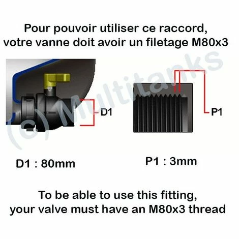 ce raccord se visse uniquement sur des vannes M80x3 :