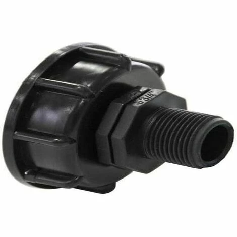 Raccord S60x6 en avec sortie filetée male 3/4 » BSP ( 20×27 ) se connectant sur la vanne de votre cuve IBC de 1000 litres . Possibilité de brancher un tuyau d’arrosage à la cuve et arroser directement à partir de la cuve.