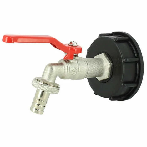 Ce raccord se fixe directement sur la vanne de votre cuve 1000 litres (filetage S60X6 requis) et vous permet de connecter votre tuyau d’arrosage sur le robinet. Le nez du robinet est dévissable. Le nez est vissé sur une sortie mâle 3/4 » pas gaz.