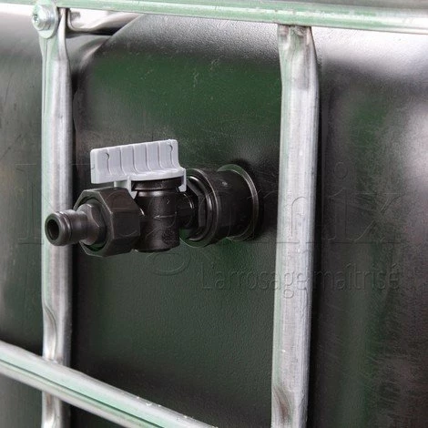 Cet ensemble est composé d’un manchon mâle fileté 3/4 » gaz, d’un manchon fileté femelle 3/4″ gaz, des joints d’étanchéité ainsi que d’une vannette arrosage gardena. Cela vous permettra de percer votre fût plastique et de créer une sortie arrosage en partie basse.